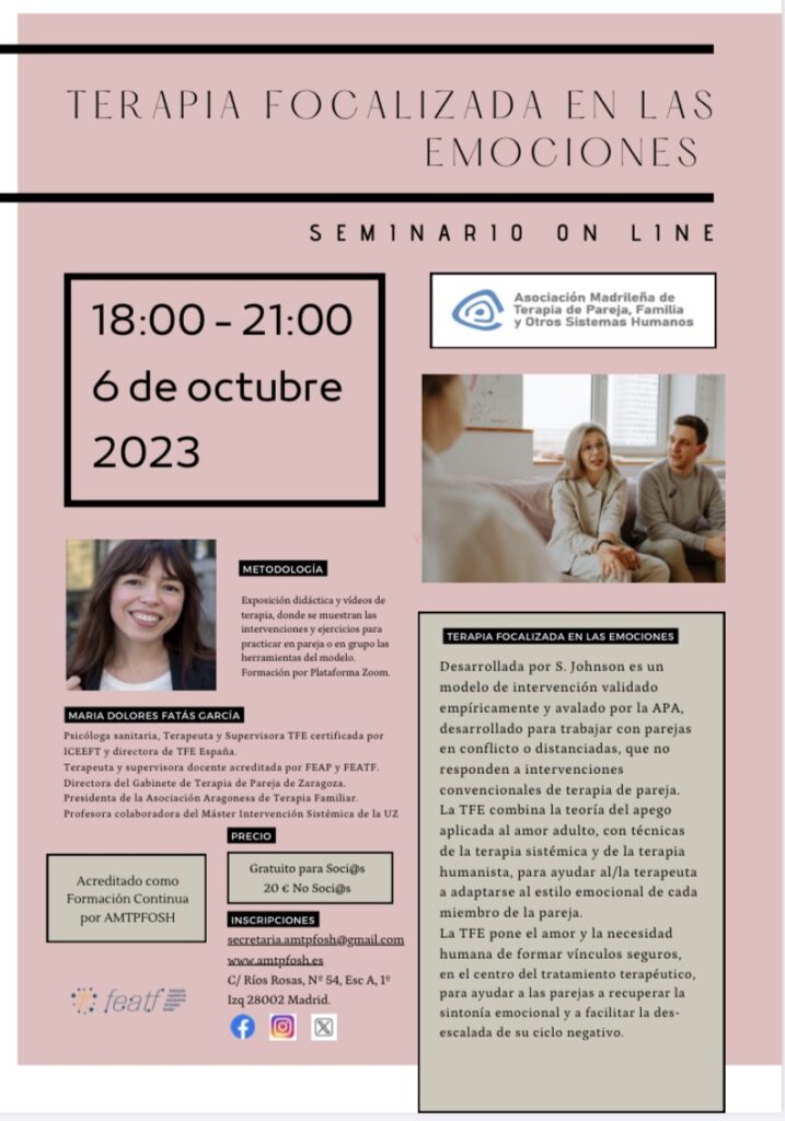 Organiza e informa: AMTPFOSH Asociación Madrileña de Terapia de Pareja y Familia y otros Sistemas Humanos