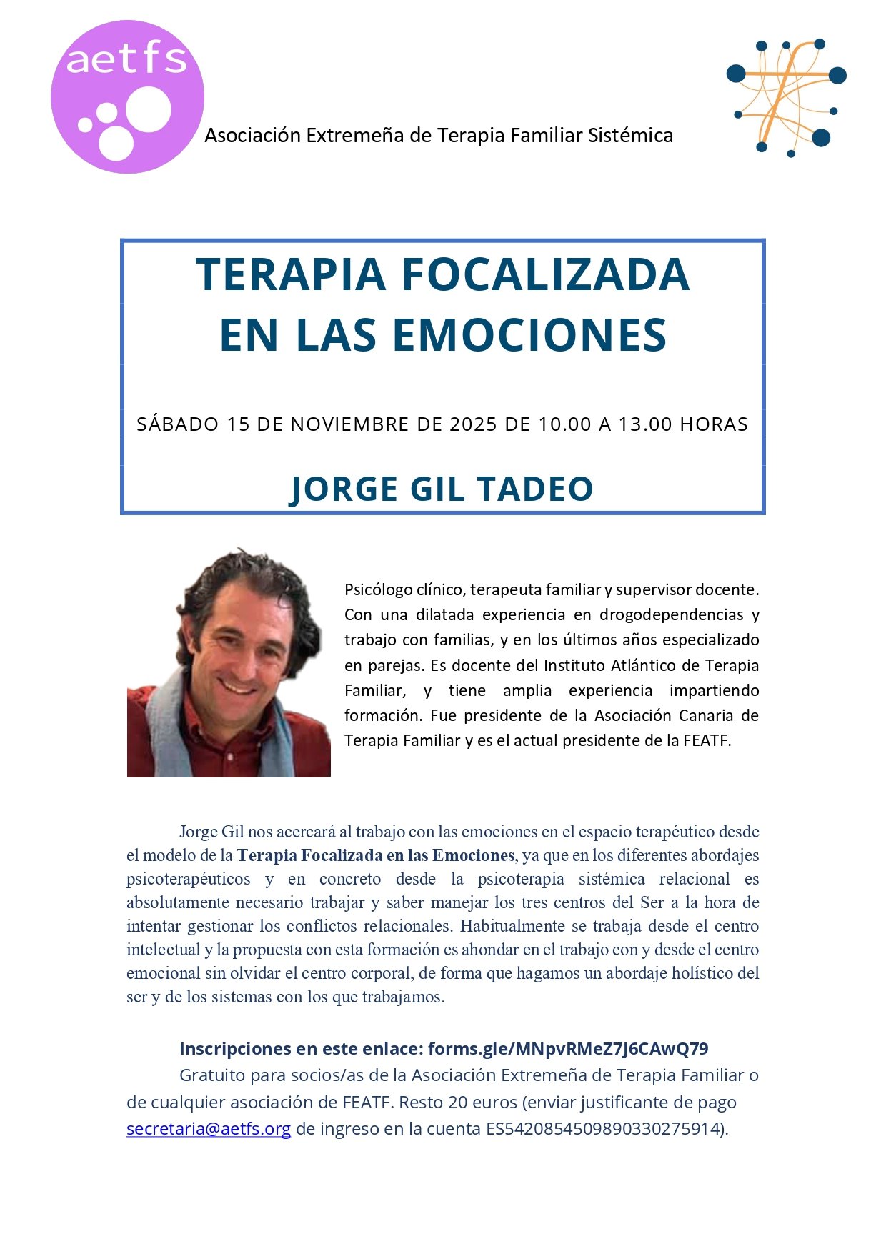 - Gratuito para socios/as de la Asociación Extremeña de Terapia Familiar o de cualquier asociación de FEATF.