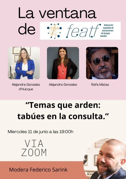 En esta edición de La Ventana de la FEATF, conversaremos con tres profesionales expertos/as sobre los tabúes que se presentan en sus consultas y cómo los manejan. Os invitamos a participar de este encuentro, no solo para escuchar sus experiencias, sino también para compartir vuestras preguntas, inquietudes o reflexiones.