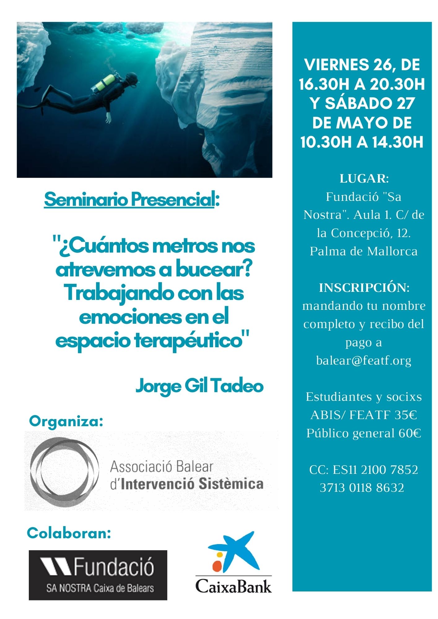 Lugar: Presencial Fundació «Sa Nostra» Aula 1 Palma de Mallorca